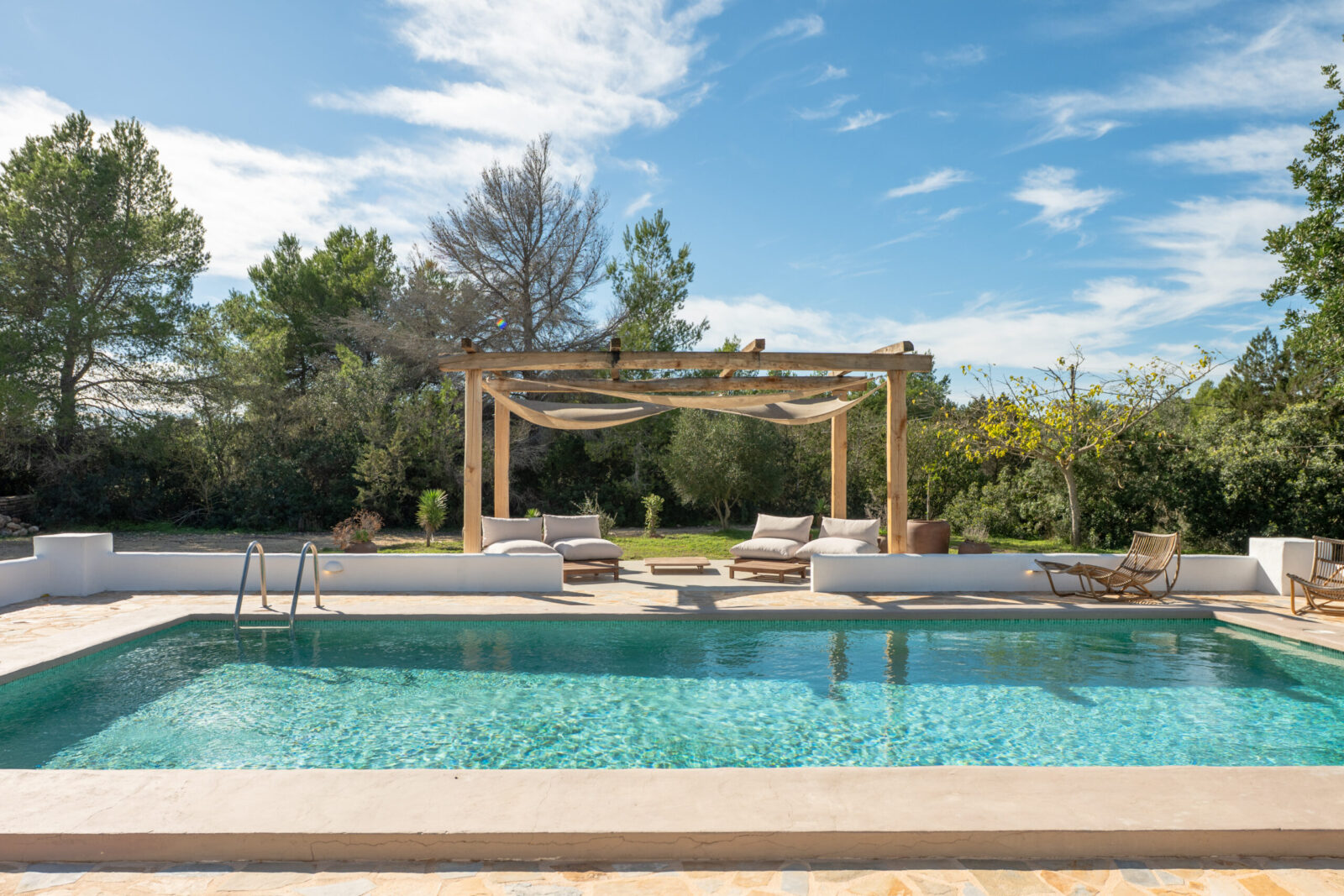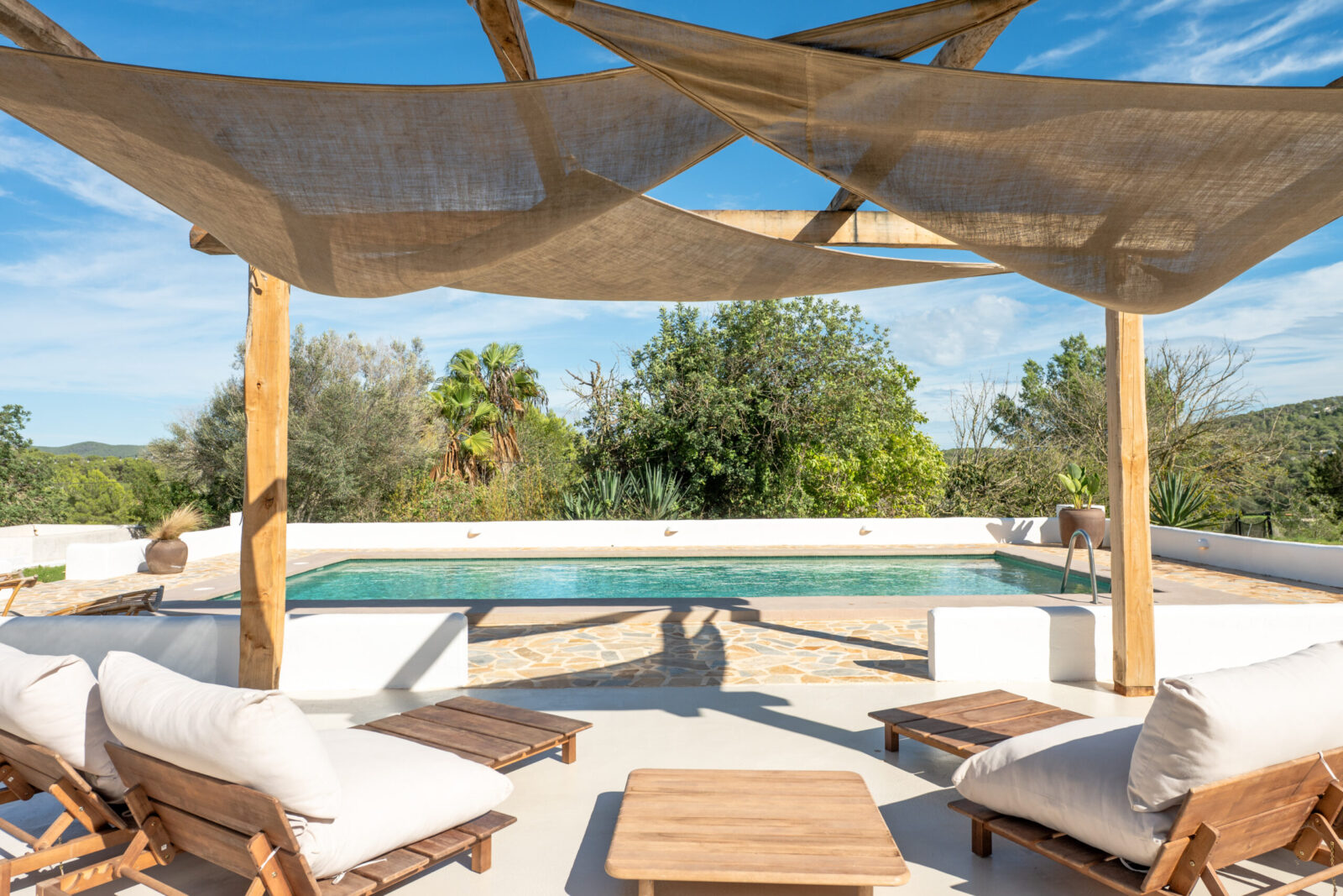 The vast land surrounding the property ensures complete privacy and an exceptional outdoor lifestyle. Mature trees, landscaped gardens, open terraces, and a swimming pool create peaceful corners to relax, entertain, and enjoy the natural beauty of Ibiza.
