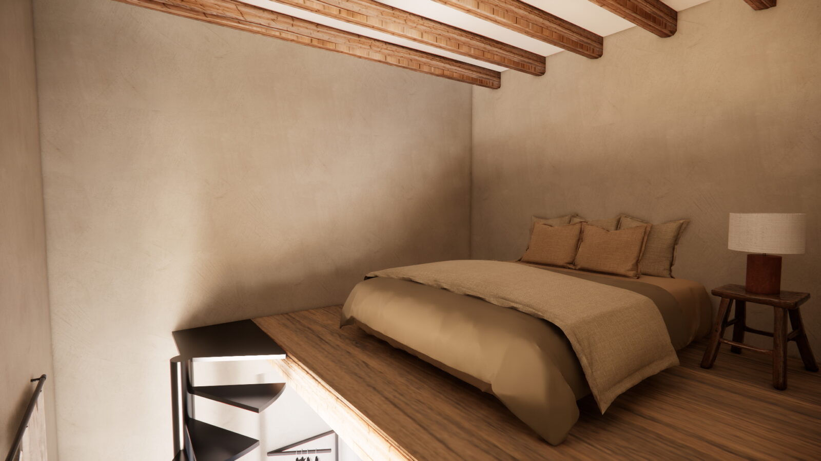 The main house features 257 m² of refined living space, designed with a harmonious blend of traditional Ibicenco charm and modern comfort. Natural materials, open layouts, and abundant sunlight create an inviting and serene atmosphere throughout. The residence offers a spacious living room, dining area, a modern kitchen, and five comfortable bedrooms. Large terraces extend the interior outdoors, connecting seamlessly to the garden and pool.